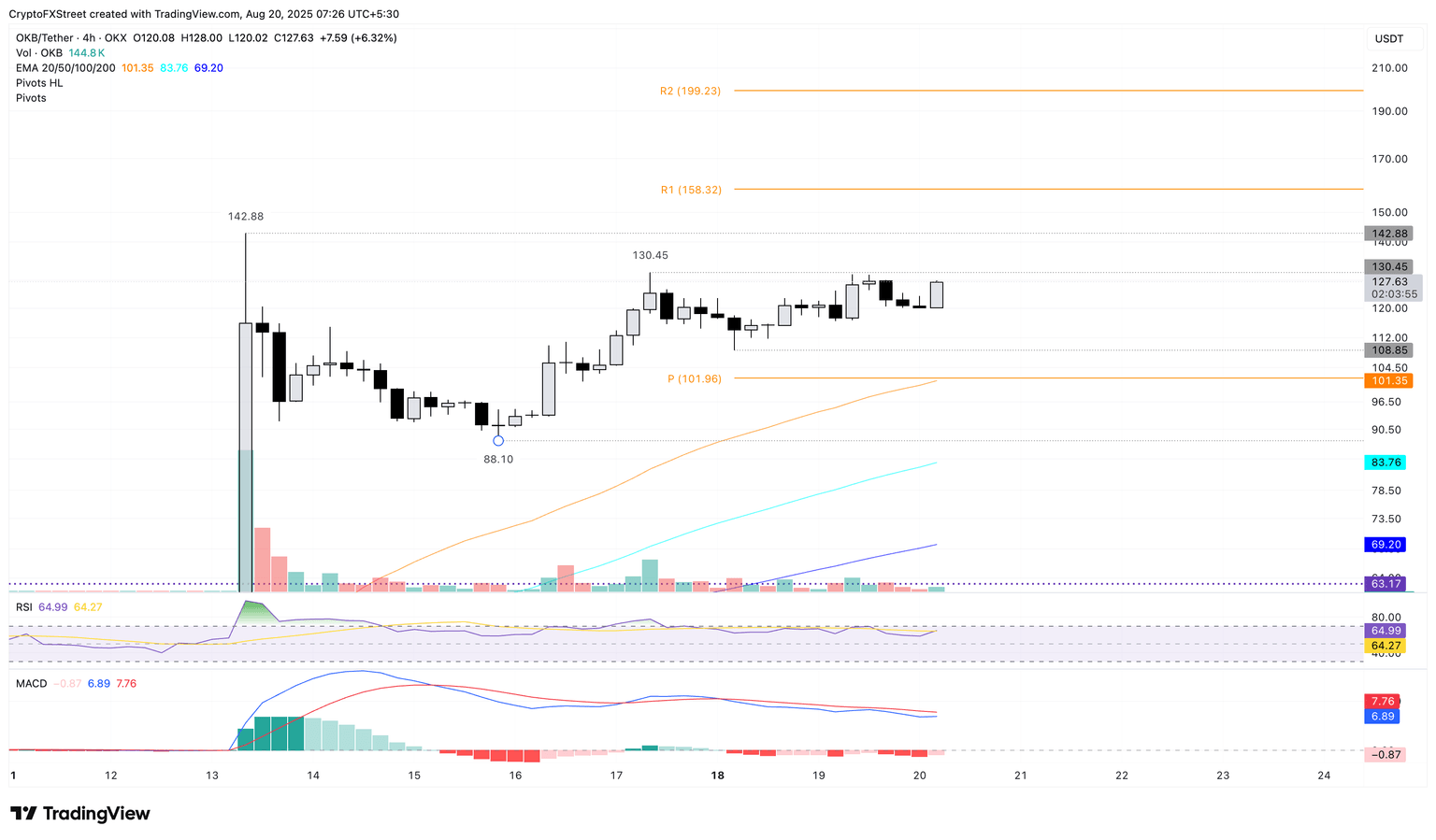 OKB edges higher by nearly 5% at press time on Wednesday, maintaining an uptrend in the 4-hour chart (shared below). The recovery run targets the $130 pivot point from Sunday.