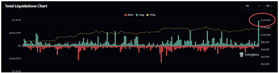 CoinGlass reported that it was the largest long liquidation event of the year. There have been similar liquidation events in late February, early April, and early August, when spot markets shed hundreds of billions over a very short period.