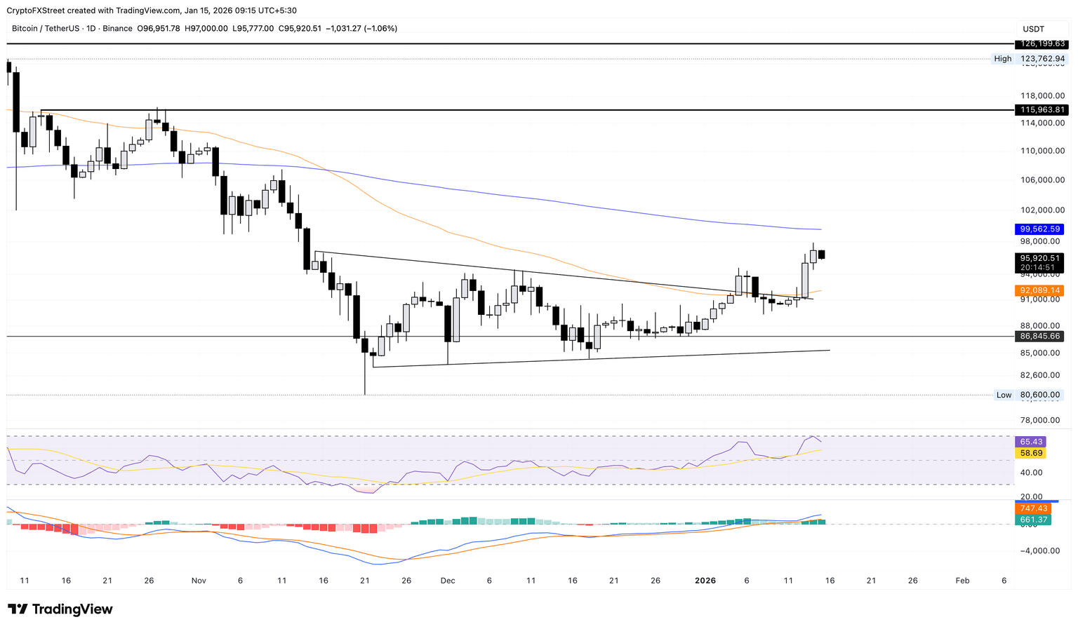 If BTC ends the day in red, it could extend the decline to the 50-day Exponential Moving Average (EMA) at $92,089.