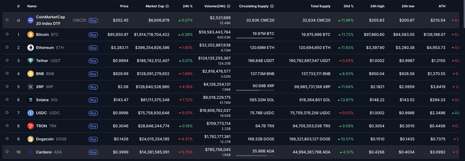 In line with the dip in BTC, altcoins such as Ethereum, XRP, Solana, and Dogecoin (DOGE) are down roughly 2% to 4%.