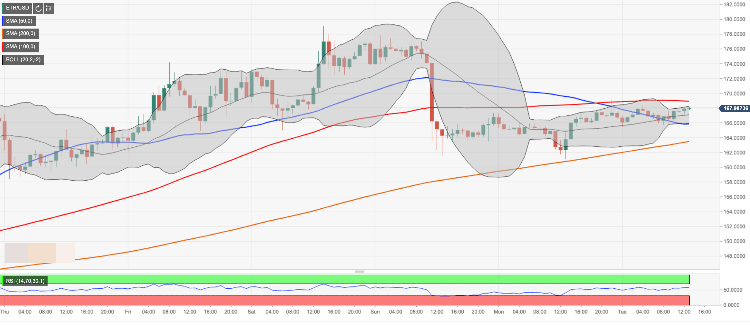 The largest cryptocurrency by market capitalization has been hovering around $8,600 area since Monday as the market cannot decide where to go next. The coin has been locked in a tight range limited by SMA100 1-hour at $8,700 and the lower line of 1-hour Bollinger Band on approach to $8,600.
