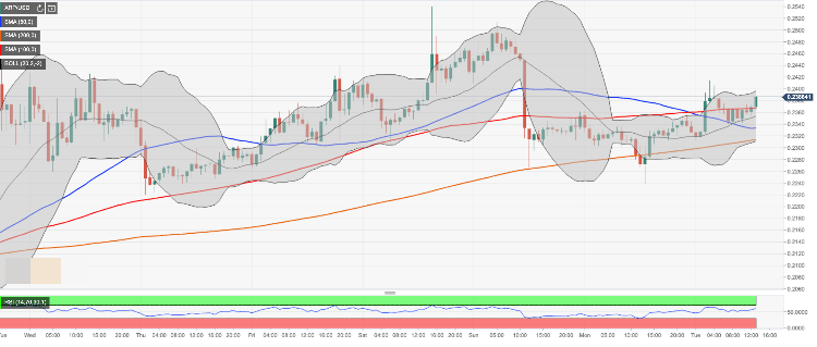 Ripple retreated to $0.2385 after an attempt to settle above $0.2400 during early Asian hours. XRRP/USD has lost over 2.5% since the beginning of Tuesday, moving in sync with the market. The short-term trend is bullish.