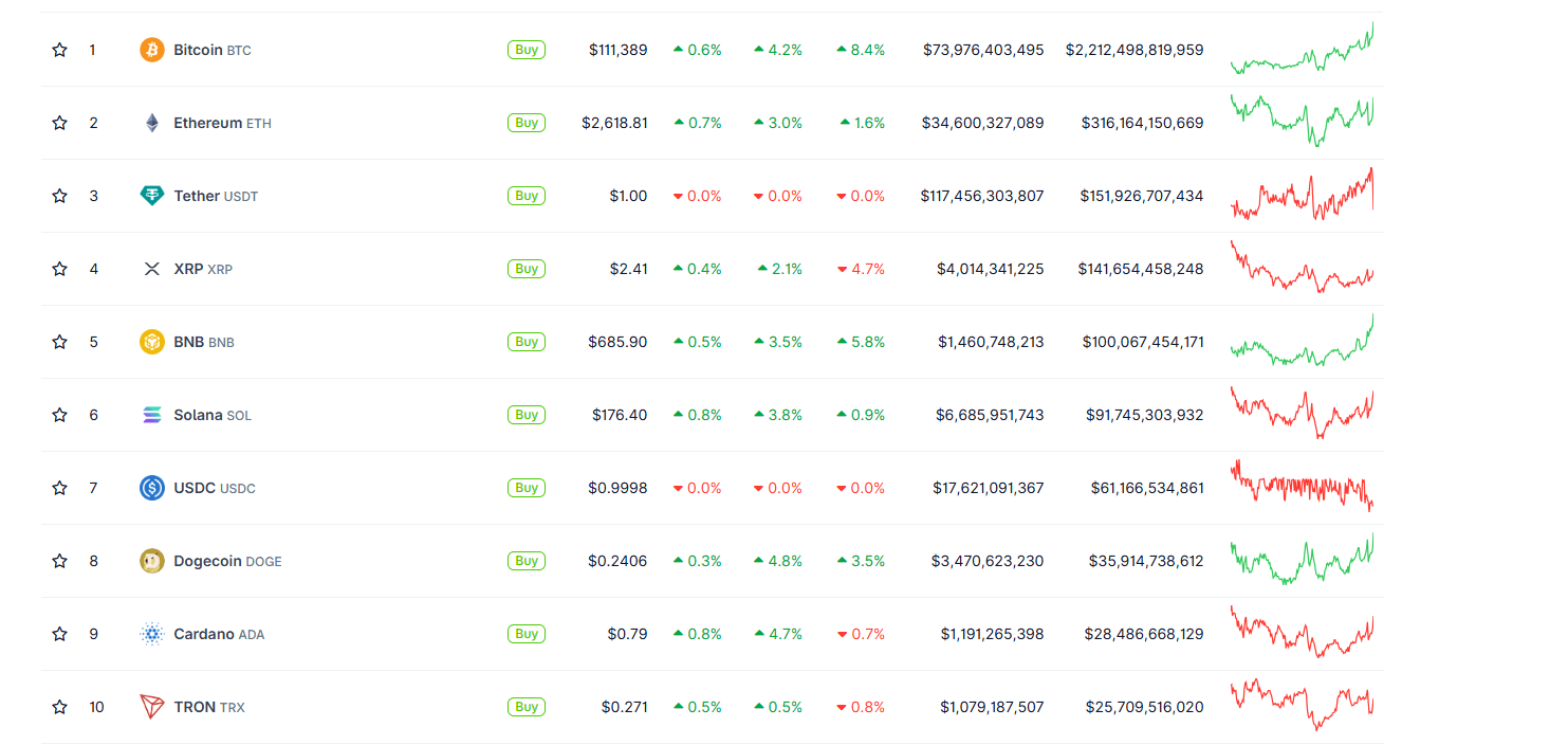 Crypto market trades green as Bitcoin blasts past $111,000, enters price discovery mode