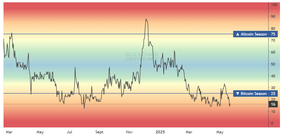 The Altseason (Phase 4) typically comes after these earlier phases, as Blockchaincenter.net’s Altcoin Season index currently reads 16. The metric indicates that altcoins have more room for growth, and investors still prefer to invest their money in Bitcoin or hold it rather than transferring it to altcoins, suggesting the market is likely in Phase 1.