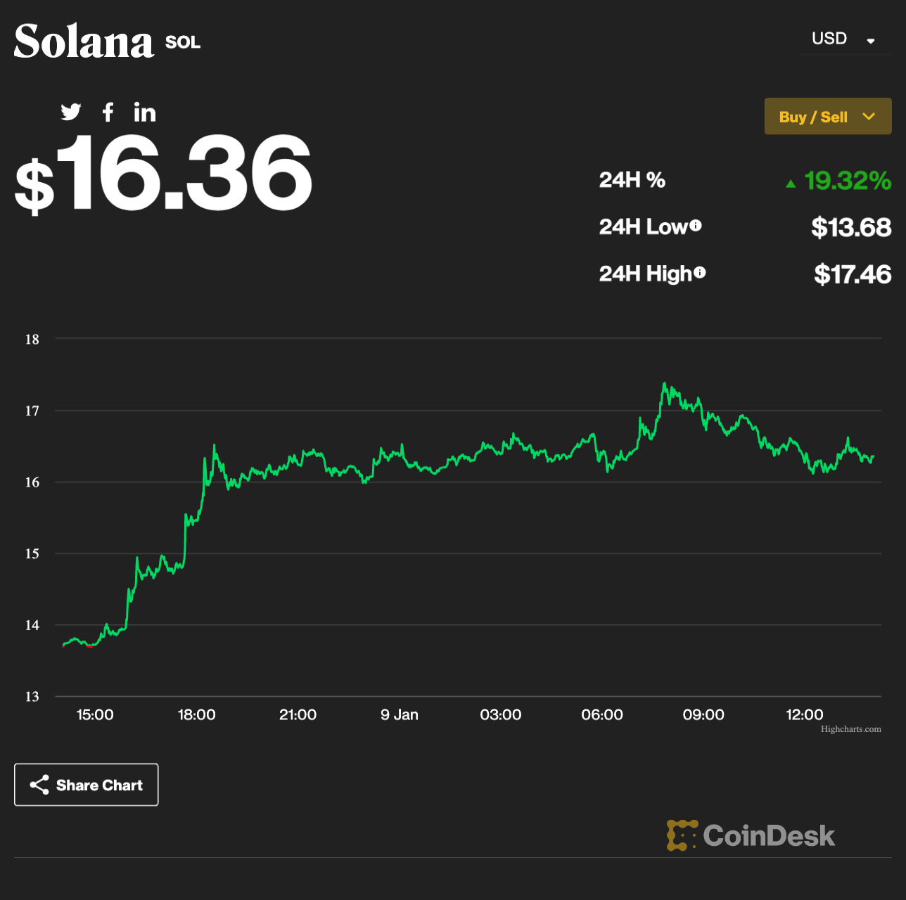 ALSO: Bitcoin and ether traded up. Solana saw double-digit gains amid strong transactional activity.