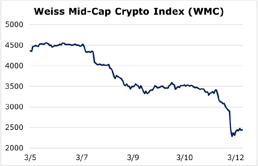 The Weiss Mid-Cap Crypto Index (WMC) dropped 44.01%.