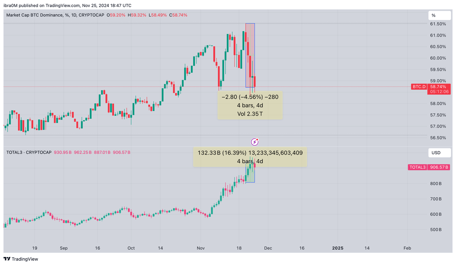 Bitcoin Dominance (BTC.D), November 2024 | TradingView