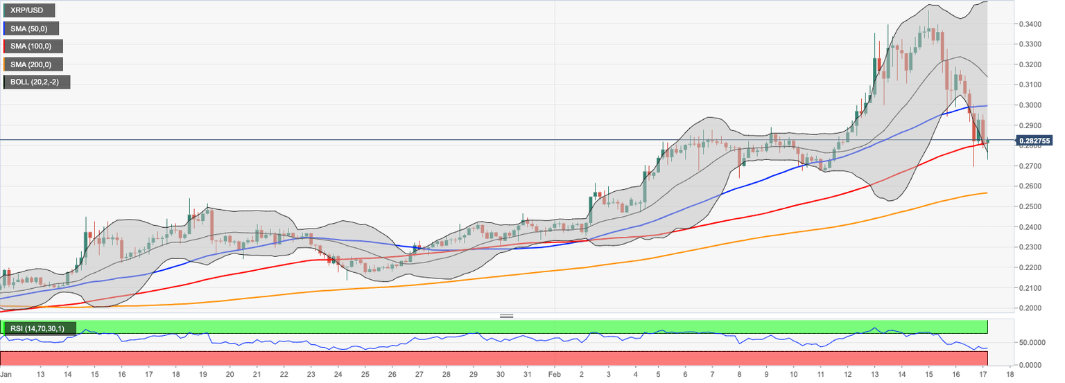 XRP/USD settled at $0.2834. The coin has lost nearly 10% in recent 24 hours amid global sell-off on the cryptocurrency market.