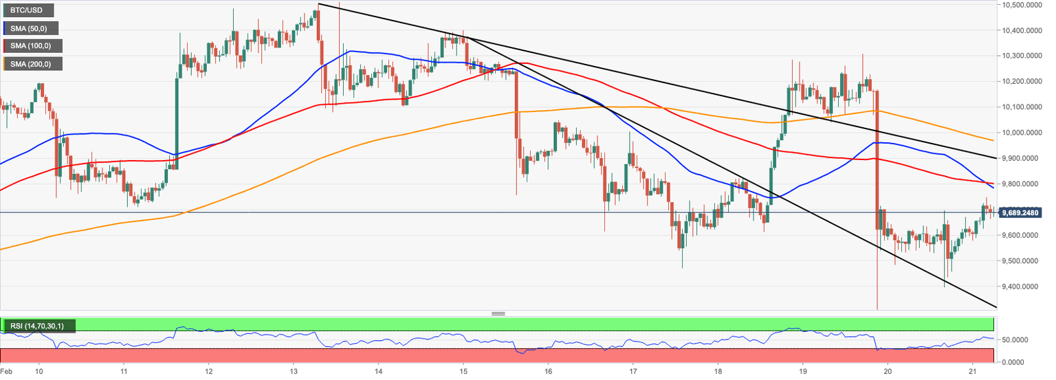 BTC/USD is currently trading at $9,693 (+0.95% on a day-to-day basis). The coin attempted a recovery above $9,700 during early Asian hours, but but the upside proved to be unsustainable. At the time of writing, BTC/USD is changing hands within a short-term bearish trend amid shrinking volatility.