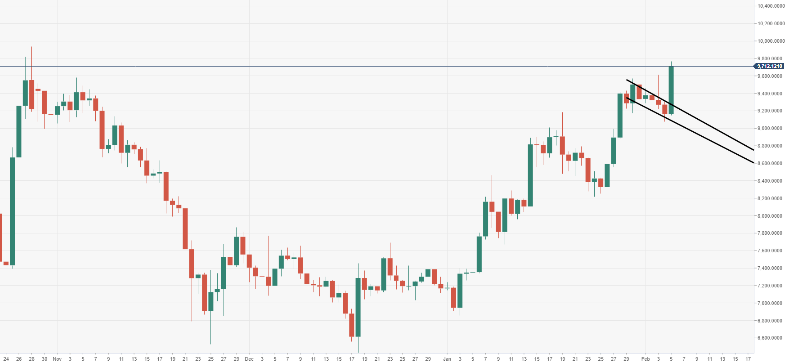 BTC/USD is currently trading at $9530 (+3.50%), as the bulls make a decent push for breaking down $9500 barrier.