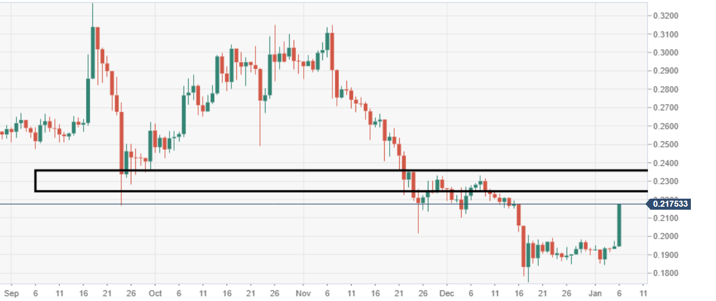 XRP/USD daily chart.( XRP/USD biggest daily gain seen since 25 October 2019).