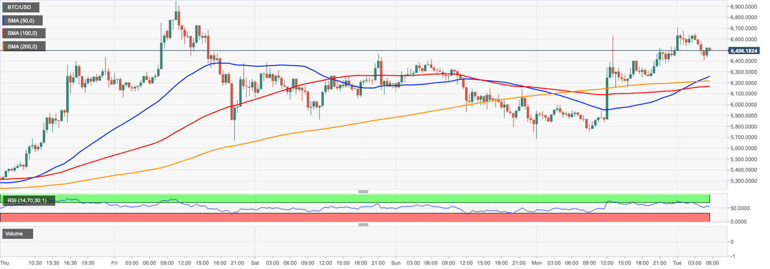 BTC/USD has been hovering around $6,500 since the start of the day. BTC has gained over 8% on a day-to-day basis and hit the intraday high at $6,709, but failed to hold the ground. Now it is moving within a short-term bullish trend amid high volatility.