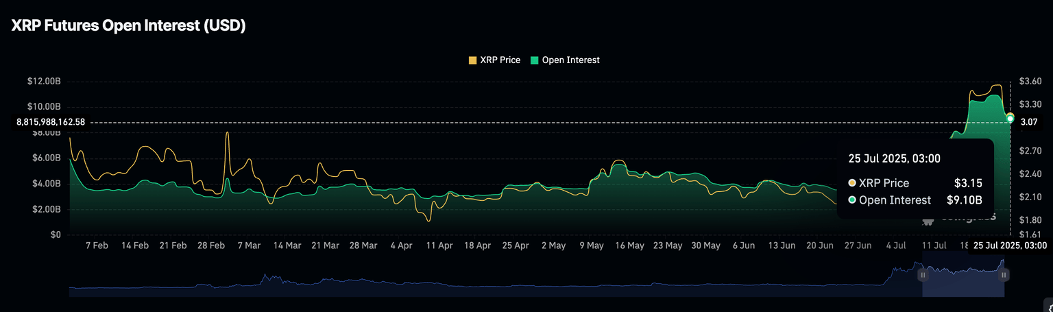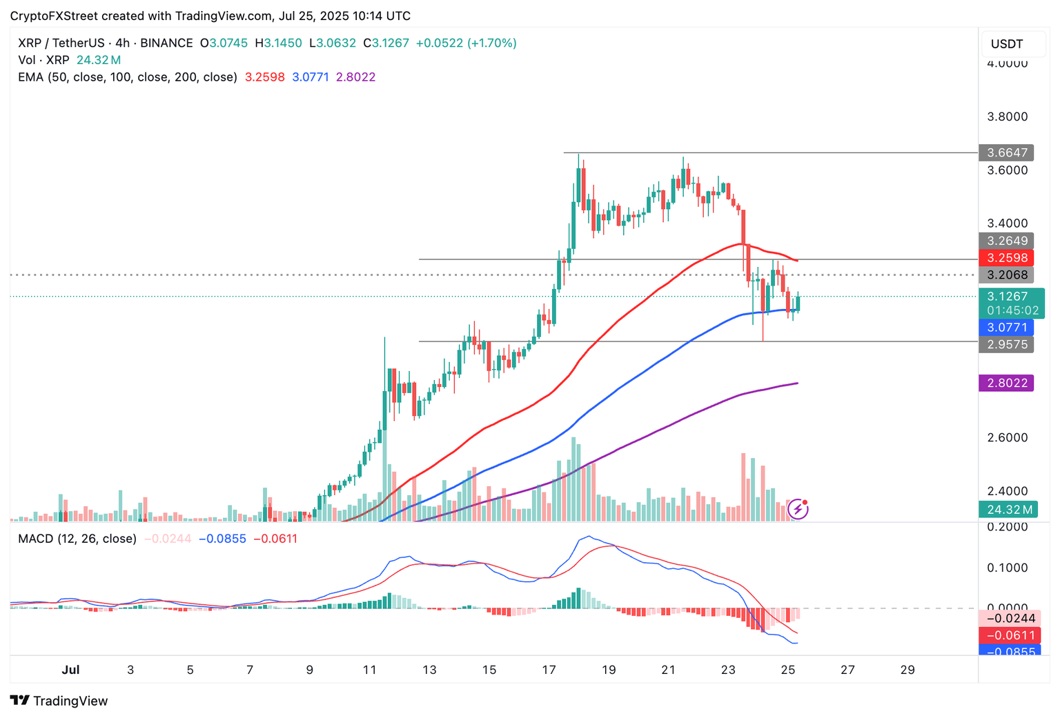 Despite an improving short-term technical picture, XRP fundamentals show weakness, particularly in the futures Open Interest and funding rates, which have retreated over the last few days. That said, it could be premature to rule out a correction below the $3.07 support, which could expand the bearish scope to the 200-period EMA at $2.80, tested on July 15.