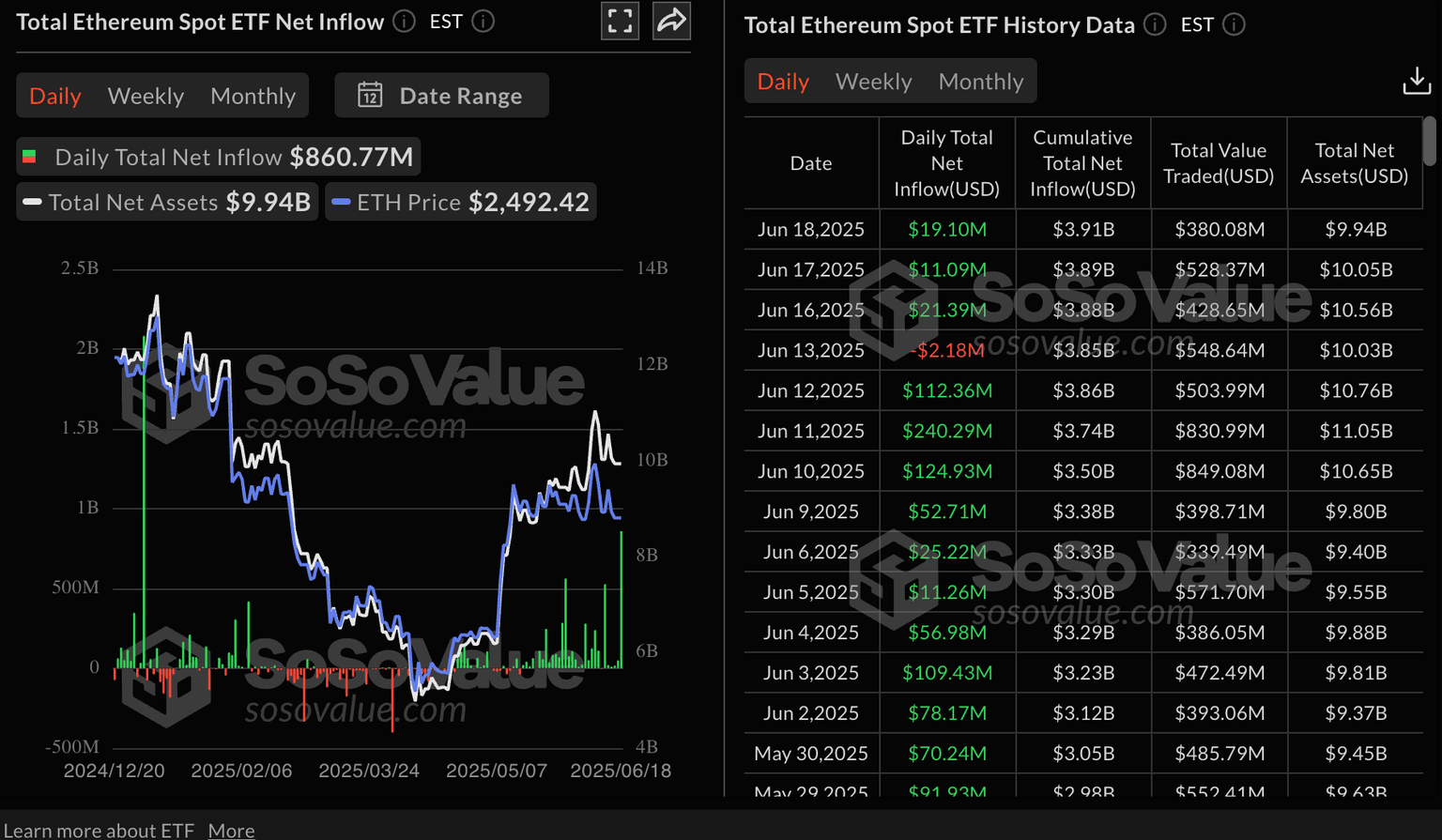 Ethereum spot ETF stats | Source: SoSoValue