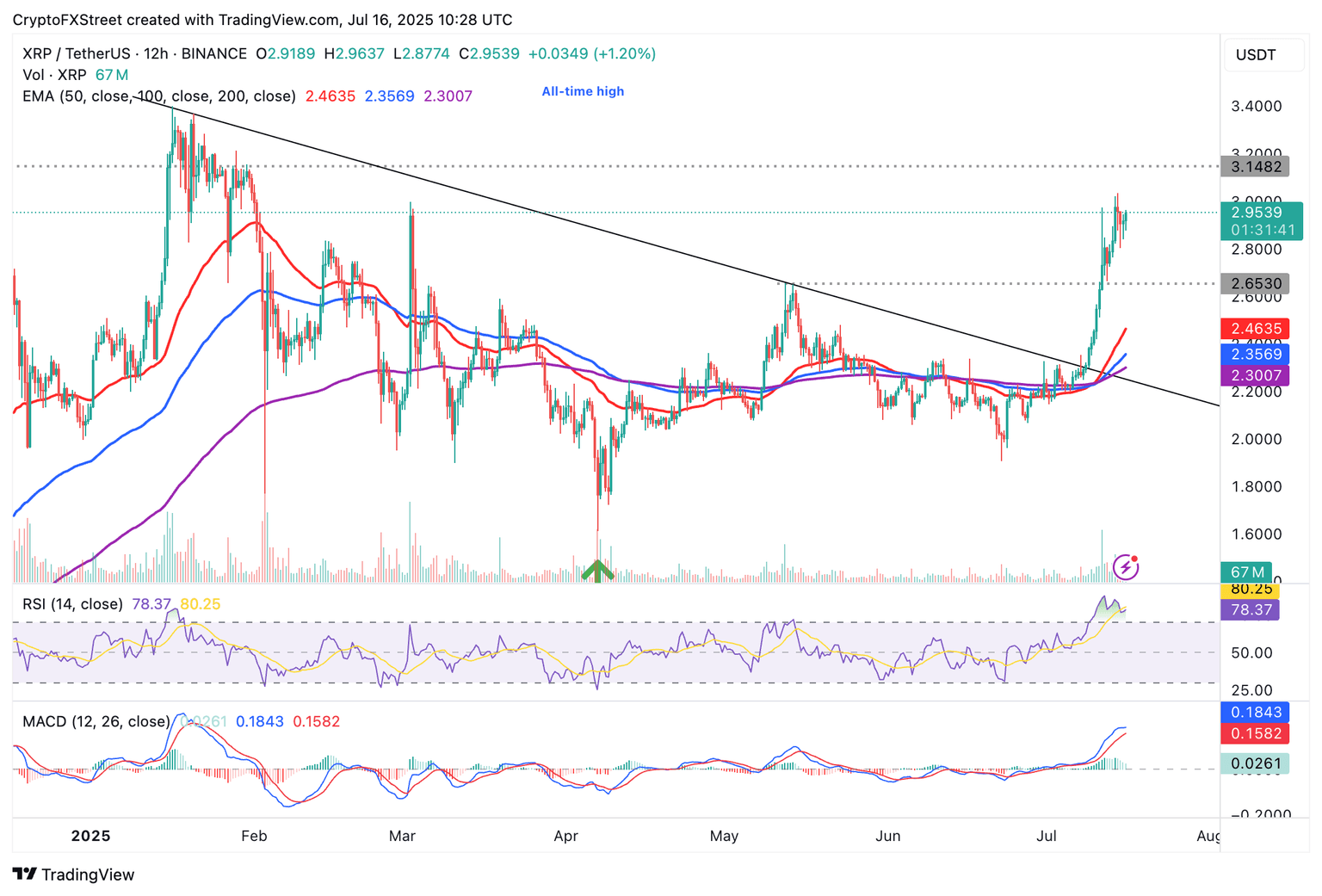 XRP/USDT 12-hour chart