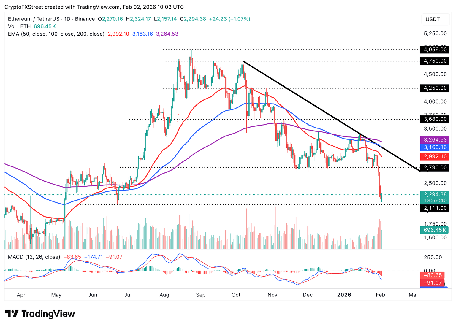 The MACD line below the signal line, along with the expanding red histogram bars, may keep traders in defence mode as they reduce risk exposure. If the support tested at $2,111 in June breaks, Ethereum could accelerate its decline below the pivotal $2,000 level.