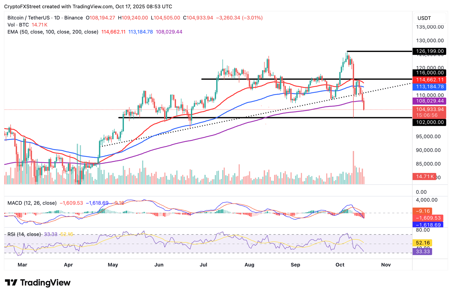 A weak technical structure contributes to selling pressure, mirroring the Moving Average Convergence Divergence (MACD) indicator, which has maintained a sell signal in the daily time frame since October 10.