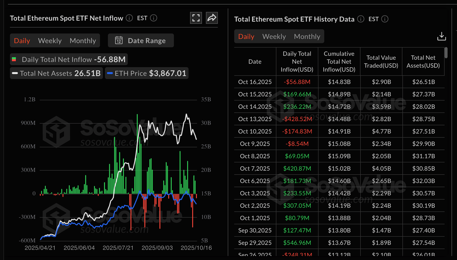 Ethereum ETF stats | Source: SoSoValue