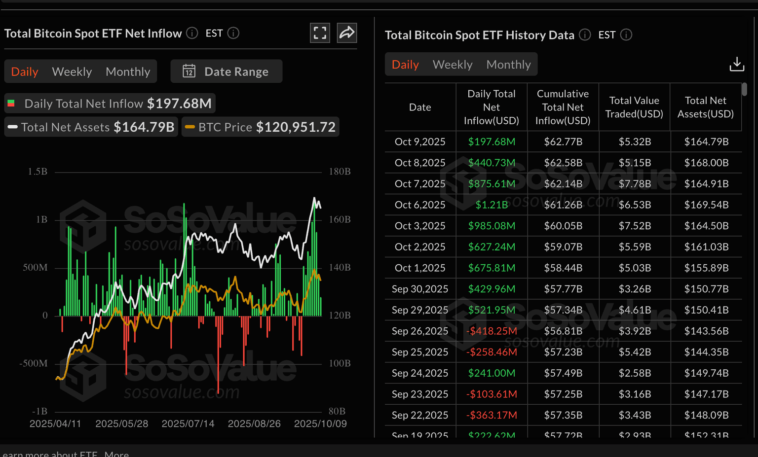 Bitcoin spot ETFs listed in the United States (US) marked nine consecutive days of inflows on Thursday, with $198 million, reflecting steady demand from institutional investors.