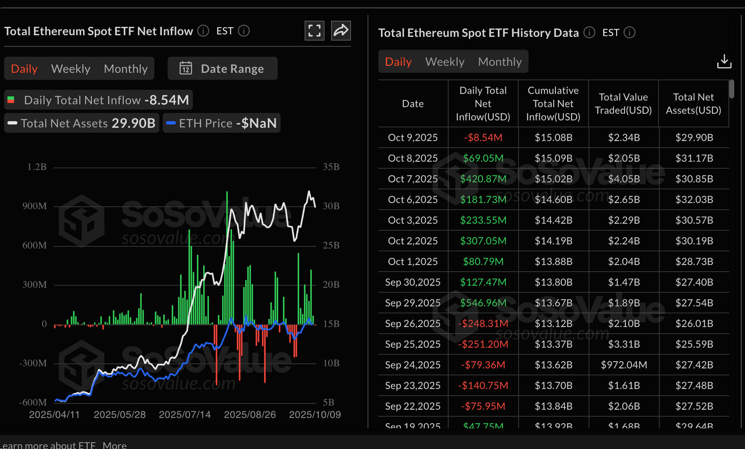 Cumulatively, Ethereum ETFs have a total net inflow of $15 billion with net assets nearing the $30 billion mark.