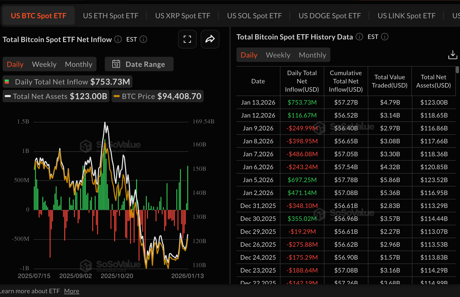 - Bitcoin stays above $95,000, supported by growing institutional demand, with ETF inflows reaching $753 million on Tuesday.