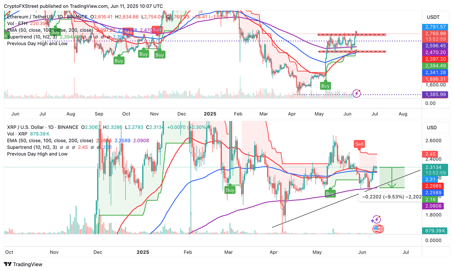 A SuperTrend sell signal validated on May 30 hints at a developing bearish outlook. If traders reduce exposure to XRP, reflecting the sell signal as a dynamic resistance, the decline could extend below the confluence support, bringing the 200-day EMA at $2.09, which is 9.5% below the current price level, into sight.