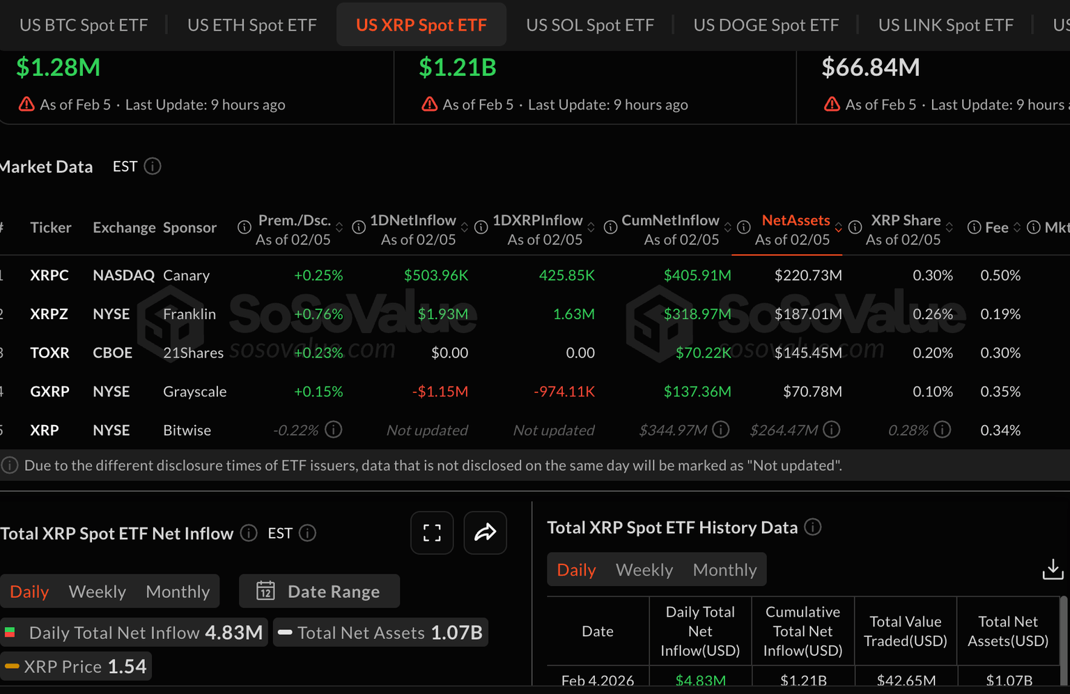 Meanwhile, XRP ETFs recorded modest inflows of $1.28 million on Thursday, down from $ 4.8 million the previous day. Although minor, this marks three consecutive days of inflows, bringing cumulative inflows to $1.21 billion and net assets under management to approximately $888 million.