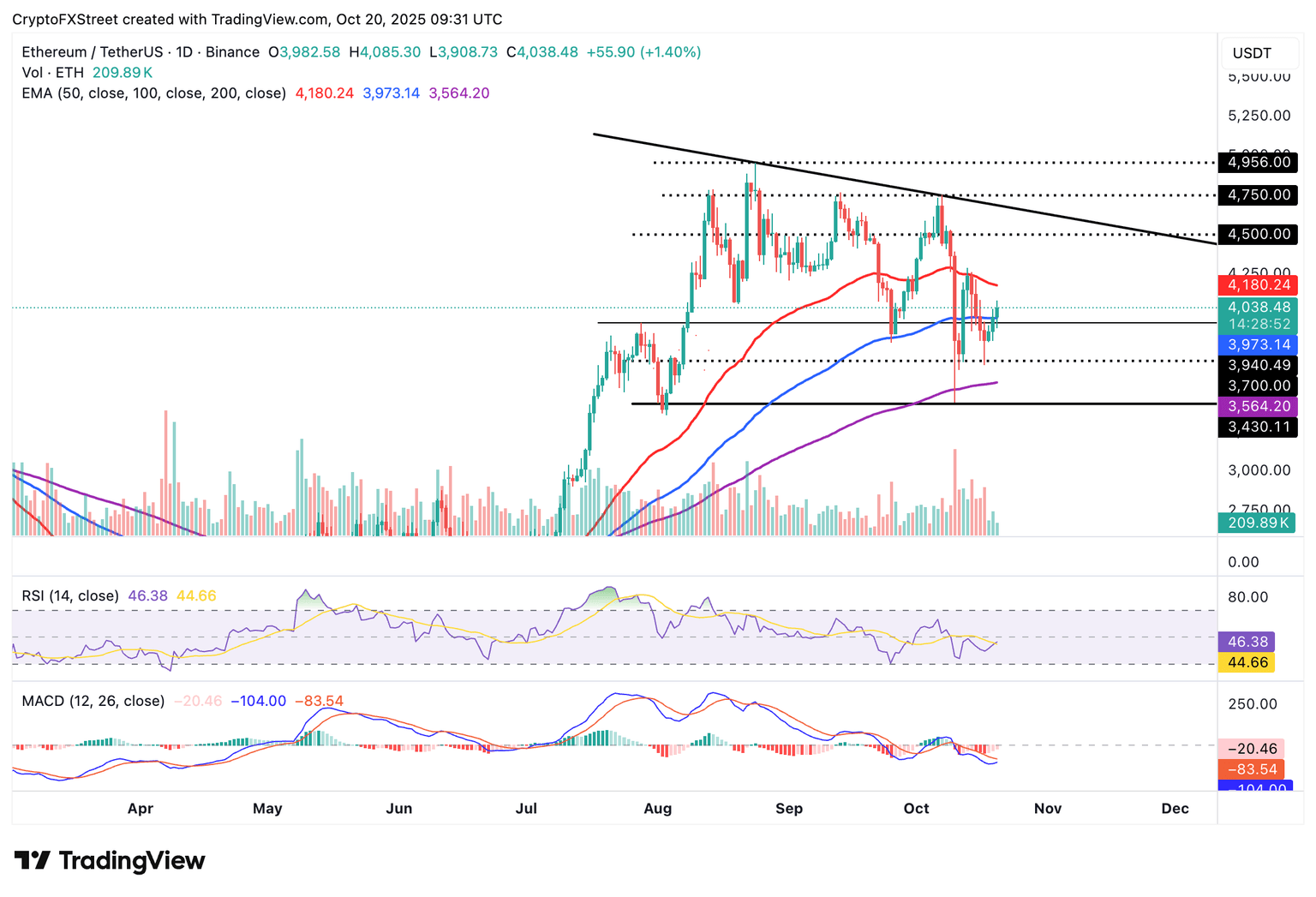 - Ethereum rises above the $4,000 key level, supported by the 100-day EMA.