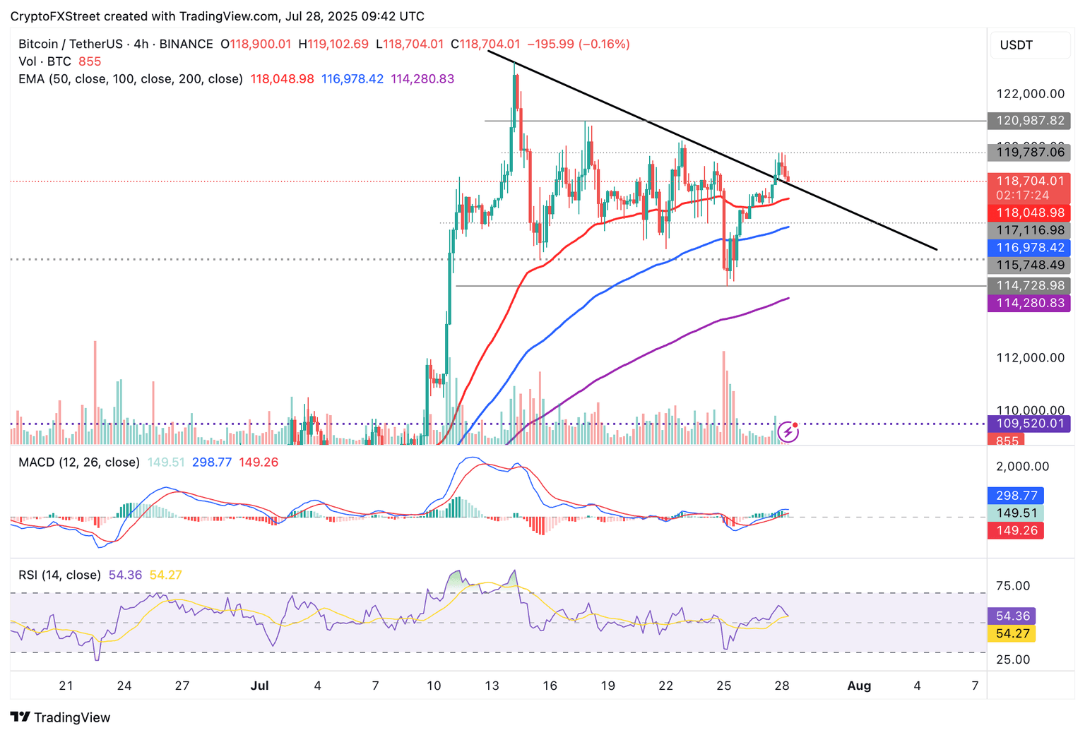 Bitcoin price faces a sudden surge of bearish headwinds as it slides to trade at around $118,704 at the time of writing on Monday. This minor intraday pullback follows an upswing to $119,800 bolstered by risk-on sentiment surrounding the US-EU trade deal.