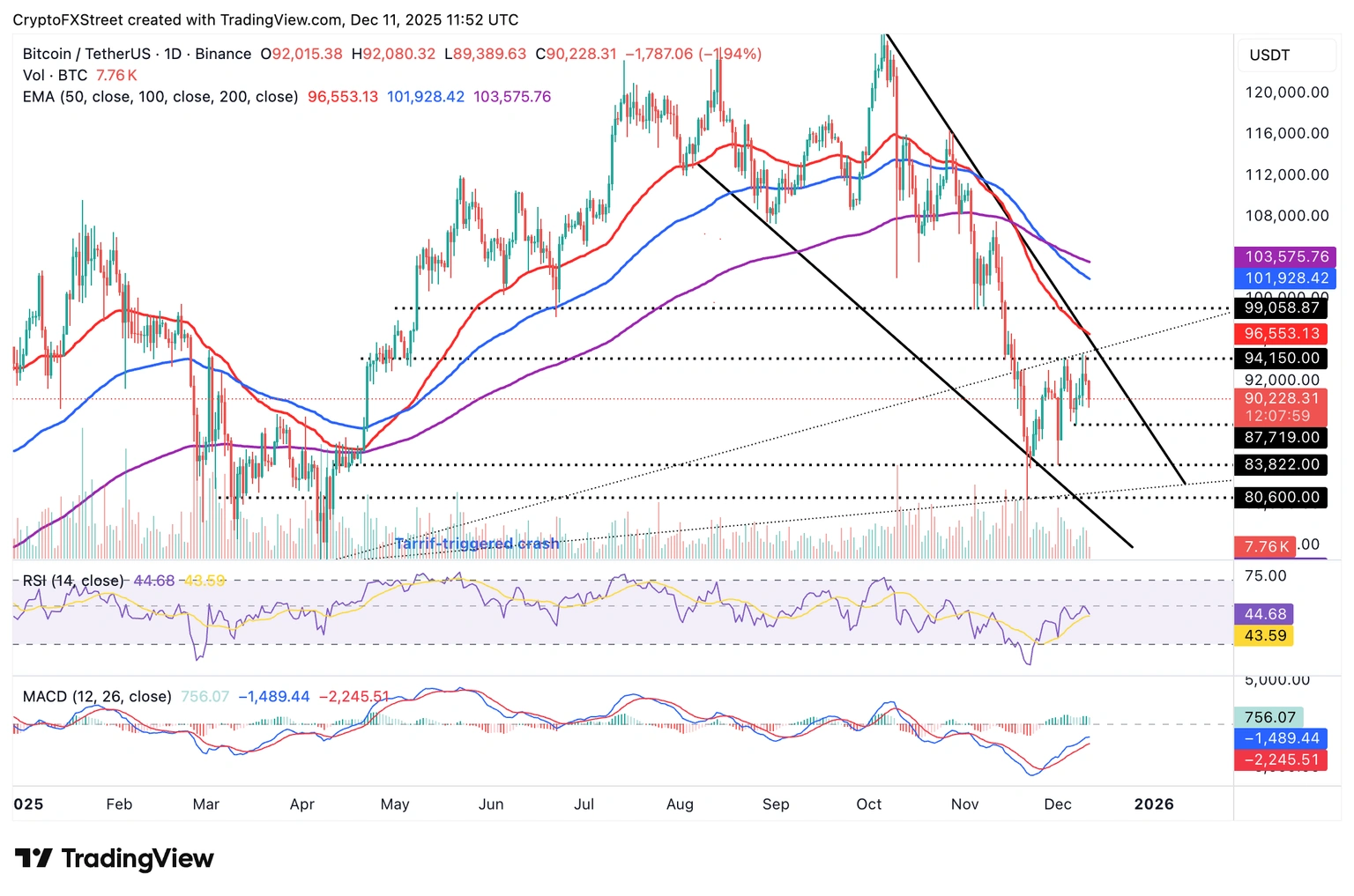Bitcoin (BTC) is trading above $90,000 at the time of writing on Thursday, weighed down by risk-off sentiment in the broader cryptocurrency market. Altcoins, including Ethereum (ETH) and Ripple (XRP), are also in the red despite the Federal Reserve (Fed) lowering its benchmark lending rate on Wednesday.