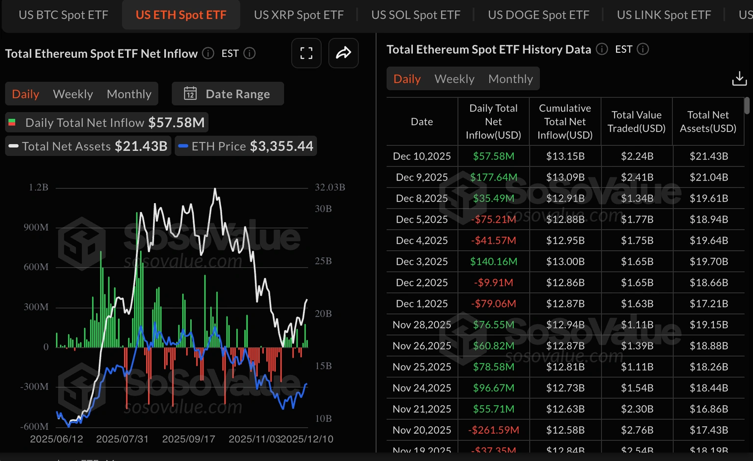 Ethereum spot ETFs listed in the United States (US) also recorded inflows with nearly $58 million on Wednesday. The largest altcoin by market capitalization has amassed $13.15 billion in total ETF volume, with net assets of $21.43 billion. Steady inflows could shape positive sentiment and boost demand for Ethereum ahead of the New Year.