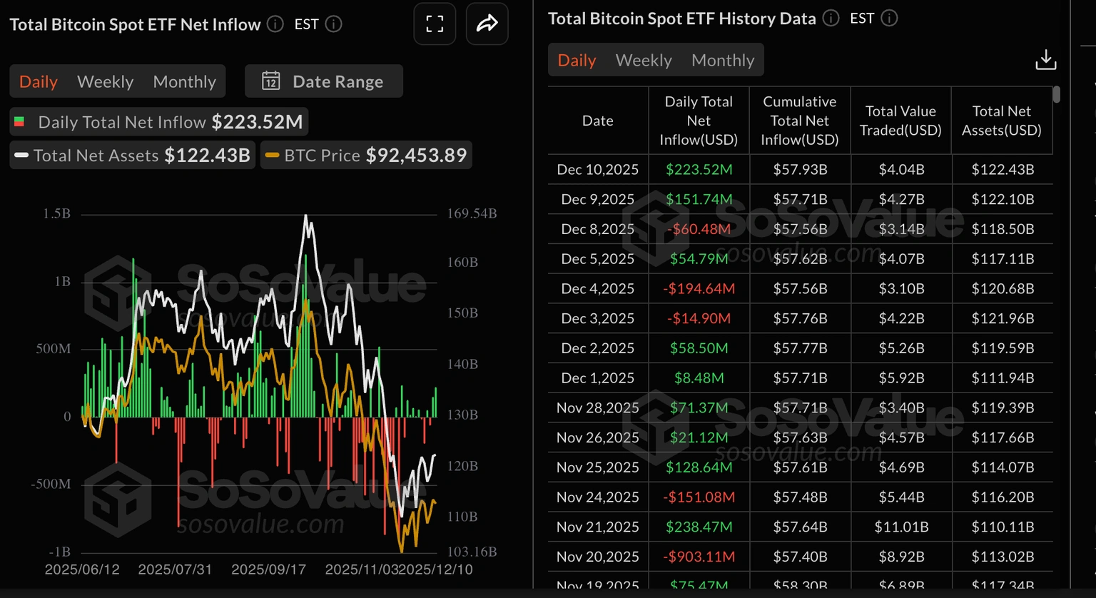 The cumulative inflow volume currently stands at $57.93 billion, with net assets of $122.43 billion, according to SoSoValue data.