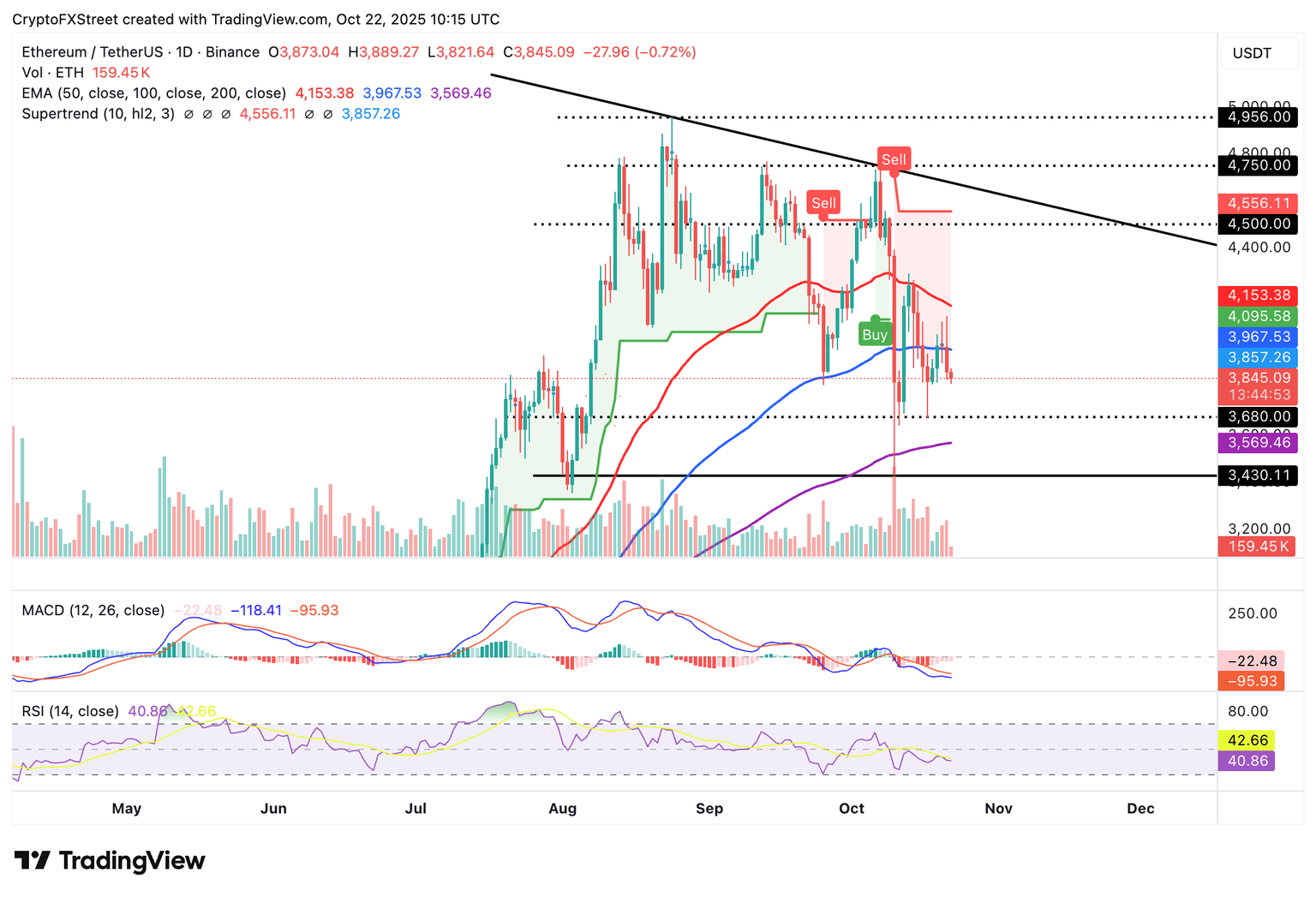 Key areas of interest for traders are the immediate round-number support at $3,800, the demand area of $3,680, tested on Friday, and the 200-day EMA at $3,569. Still, an immediate rebound above the $4,000 level cannot be ruled out, especially with institutions seeking exposure through ETFs.