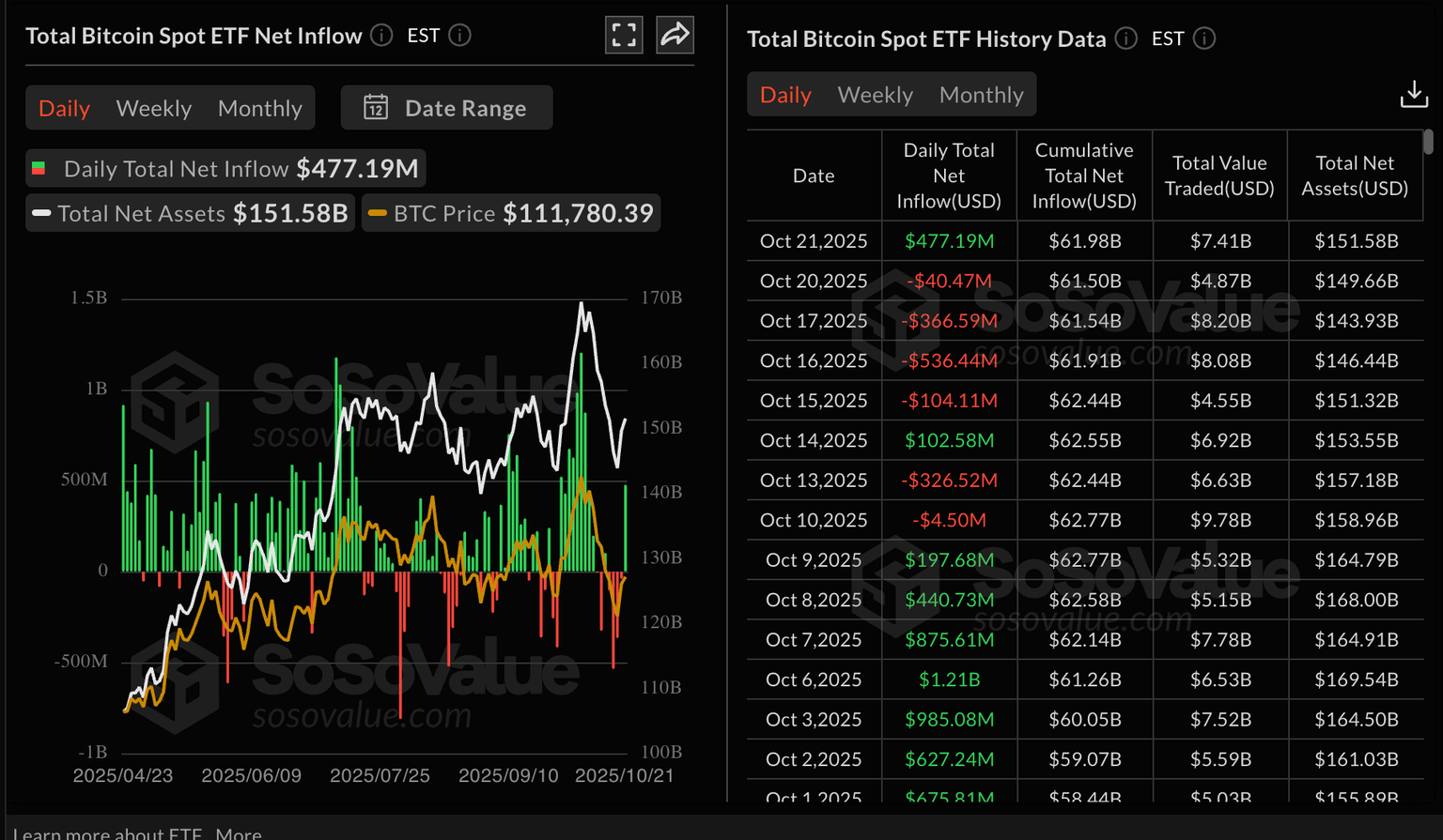 Bitcoin ETF stats | Source: SoSoValue