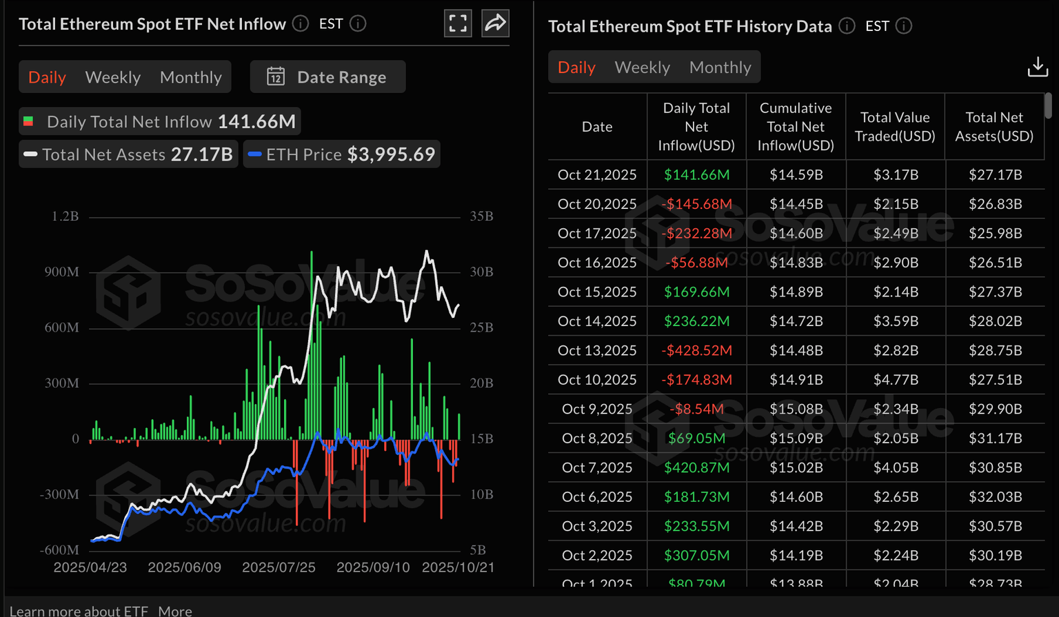 Ethereum ETF stats | Source: SoSoValue