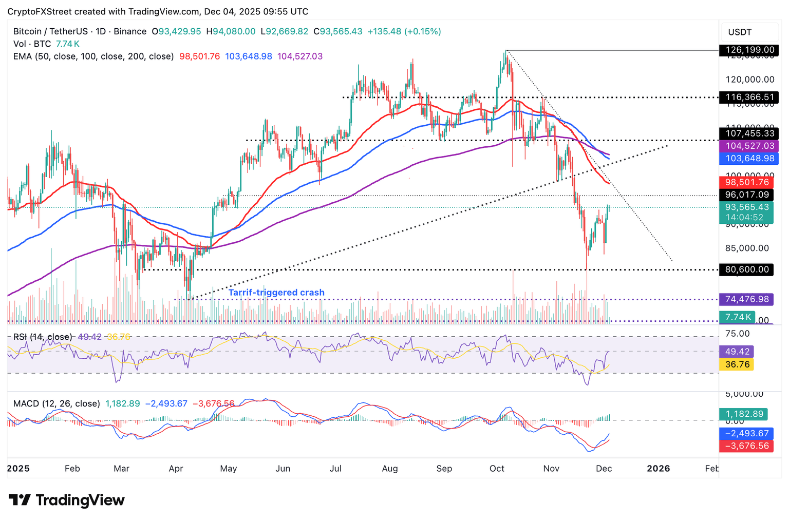 Bitcoin is holding above $93,000 at the time of writing on Thursday, as bulls push to regain control and close the gap toward $100,000. The Moving Average Convergence Divergence (MACD) indicator has maintained a buy signal on the daily chart since November 26, suggesting that bearish momentum is easing.
