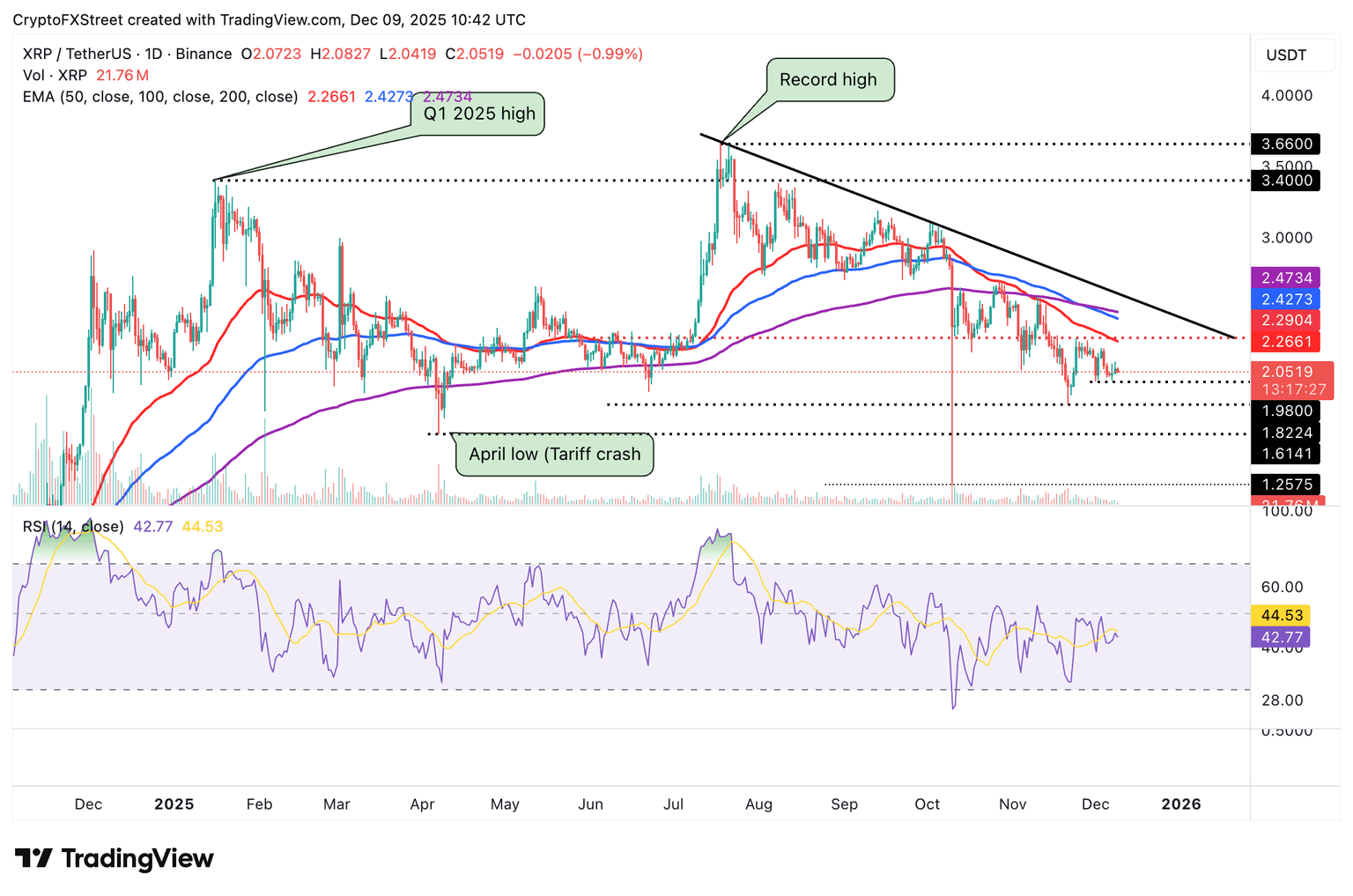 Crypto Today: Bitcoin, Ethereum, XRP trade under pressure amid mixed technical signals