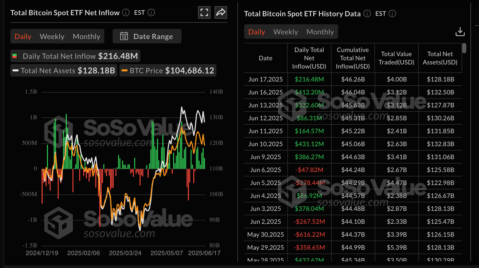 Bitcoin spot Exchange Traded Funds (ETFs), with $216 million in daily net inflow recorded on Tuesday, stand significantly below the $412 million posted on Monday. BlackRock's IBIT continued its lead over other US spot ETFs, with a net inflow of $639 million. None of the remaining ETF operators recorded net inflows on Tuesday, reflecting the persistent risk-off sentiment.