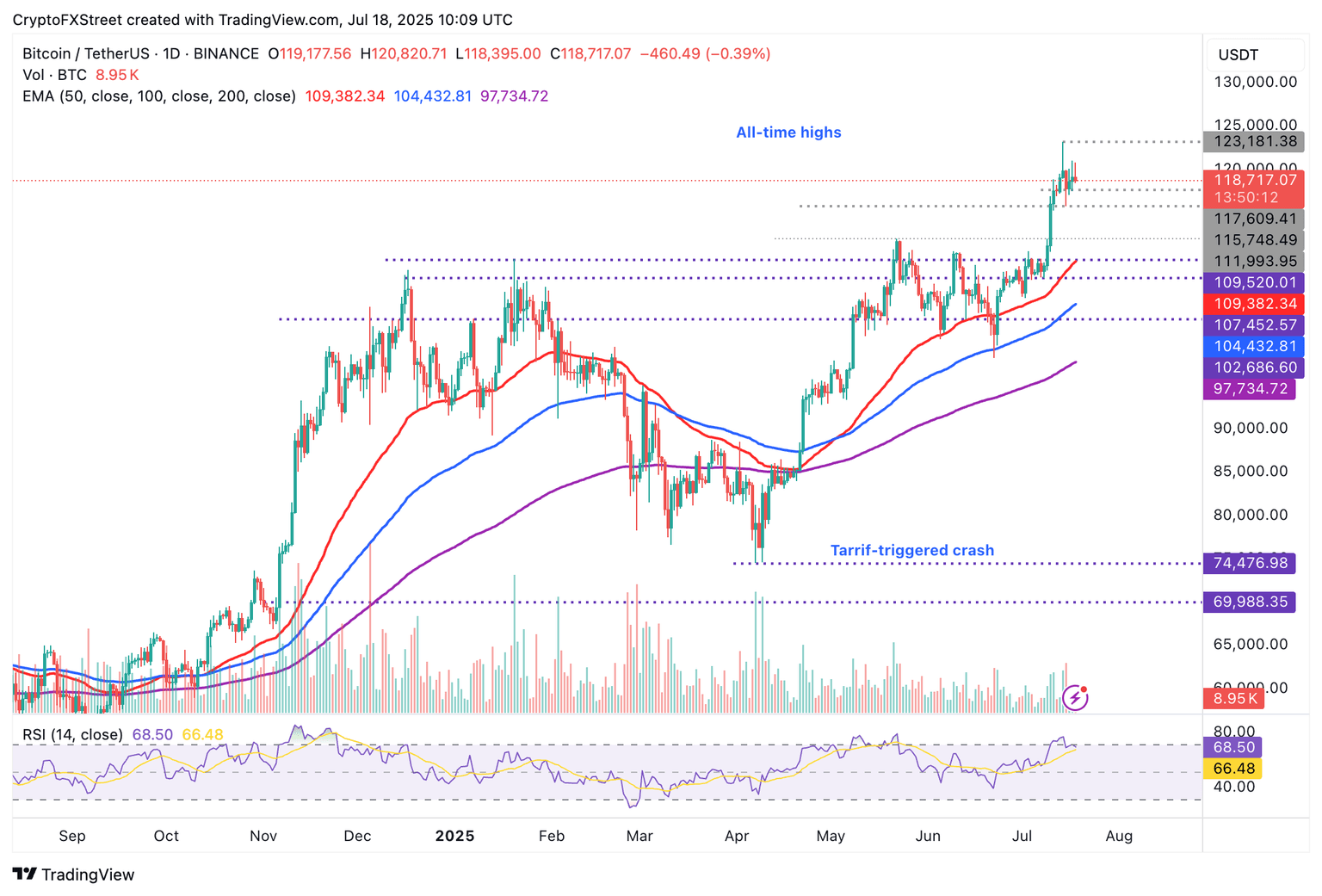 A break above the $120,000 hurdle could steady risk-on sentiment, encouraging investors to seek exposure rather than taking profits. Increased demand for BTC could accelerate the price to fresh record highs.