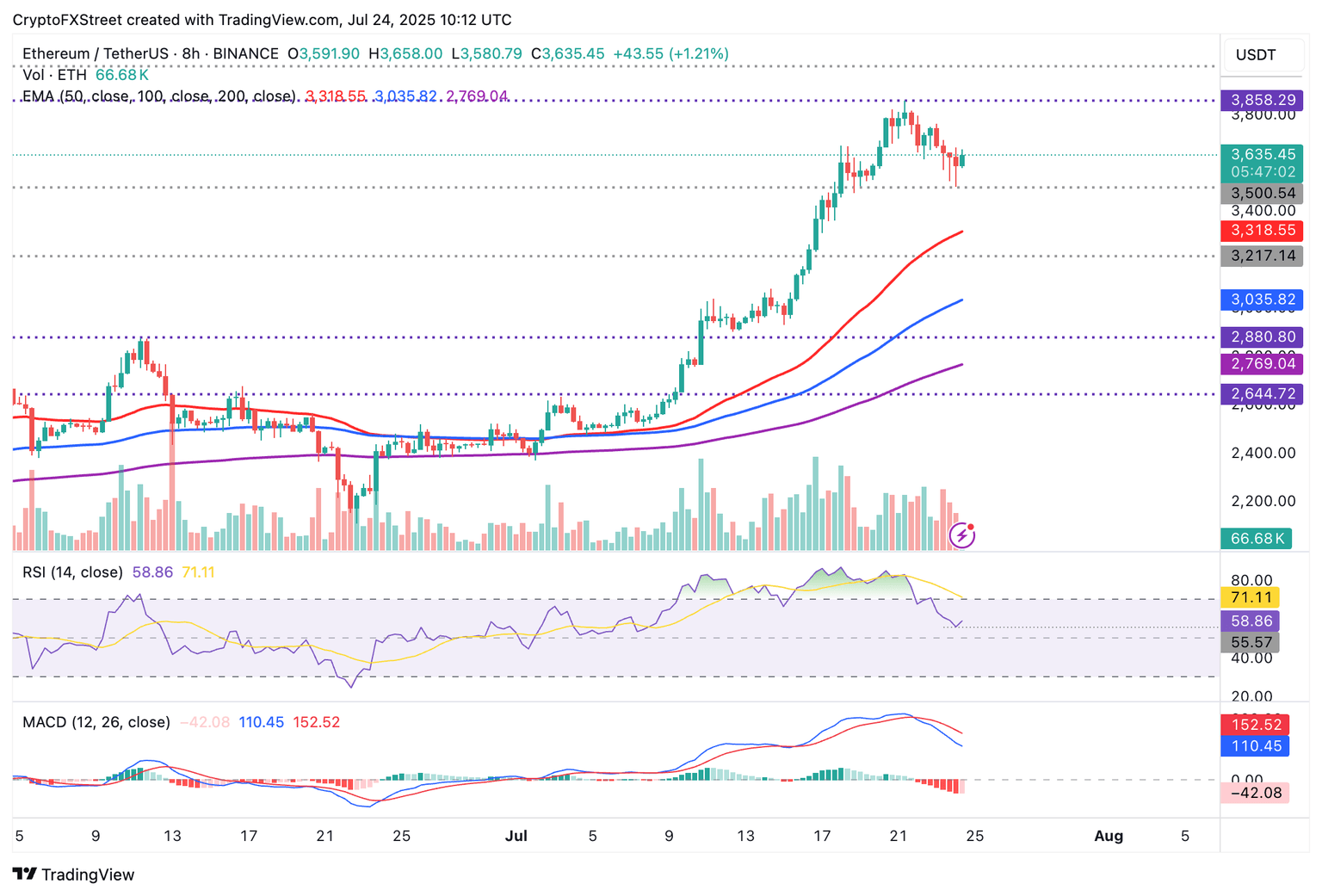 Ethereum price is nurturing a recovery after retesting support near $3,500 during the Asian session. The upward-looking RSI at 60 on the 8-hour chart follows a drop to 55, indicating that buying pressure is increasing and could help sustain the recovery.