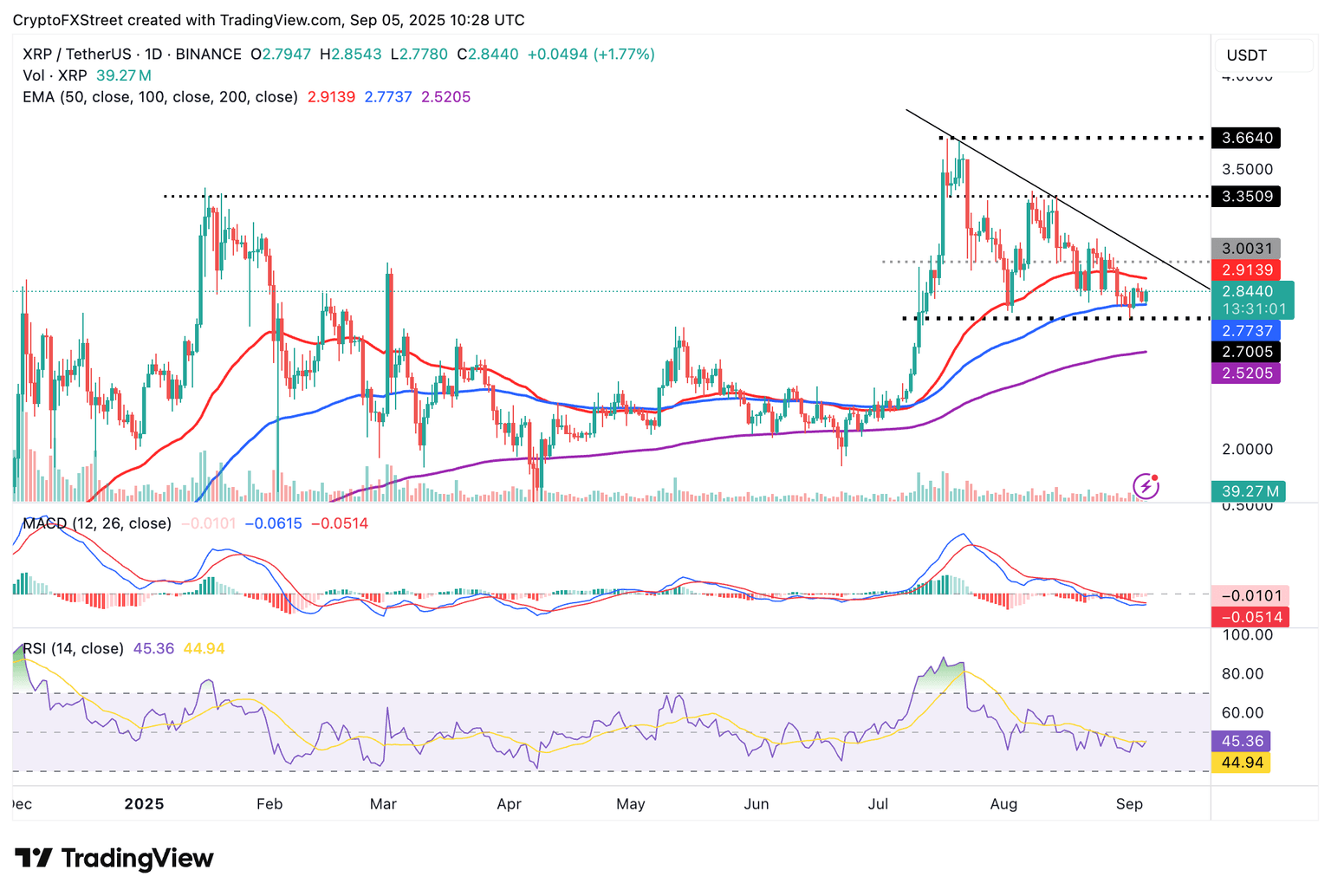 As for XRP, its current position between the 100-day EMA support at $2.77 and the 50-day EMA resistance at $2.91 points to a prolonged consolidation period ahead of the next breakout. A sell signal from the MACD indicator since July 25 hints at the downtrend continuing toward the 200-day EMA support at $2.52.
