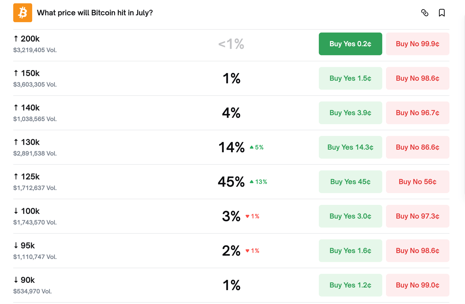 Bitcoin could hit $125,000 by July-end | Source| Polymarket