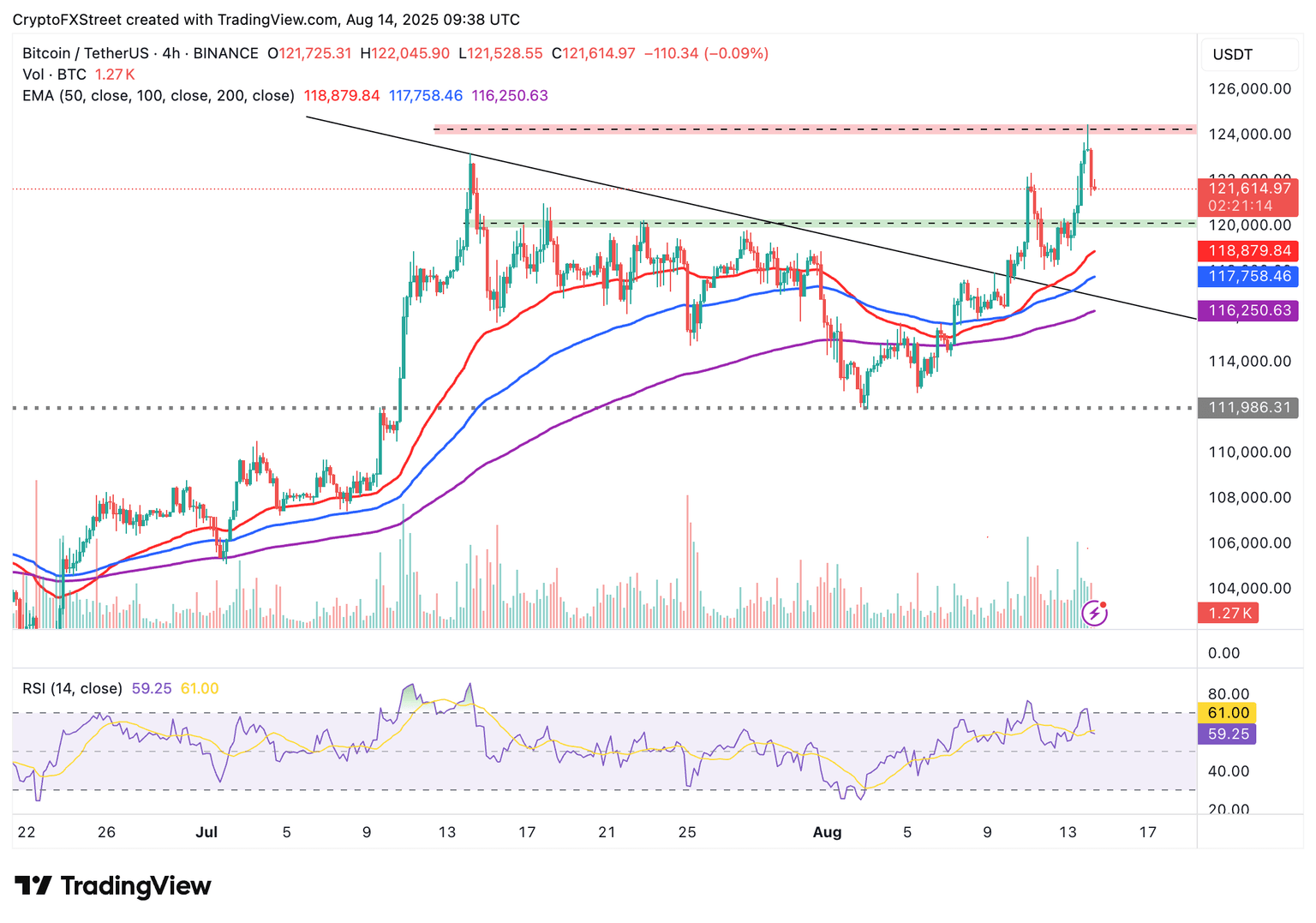 Bitcoin (BTC) corrects on Thursday after extending a breakout to a new record high of $124,474 earlier in the day, trading at $121,615 at the time of writing. The uptrend triggered price increases among altcoins, with Ethereum (ETH) approaching its record high above $4,800 reached in November 2021.