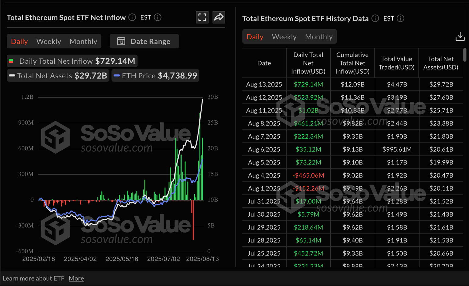 US-listed Ethereum spot Exchange Traded Funds (ETFs) continue to outperform BTC spot ETFs . According to SoSoValue data, ETH spot ETFs saw a total of $729 million in net inflows on Wednesday, up from the $524 million recorded on Tuesday.