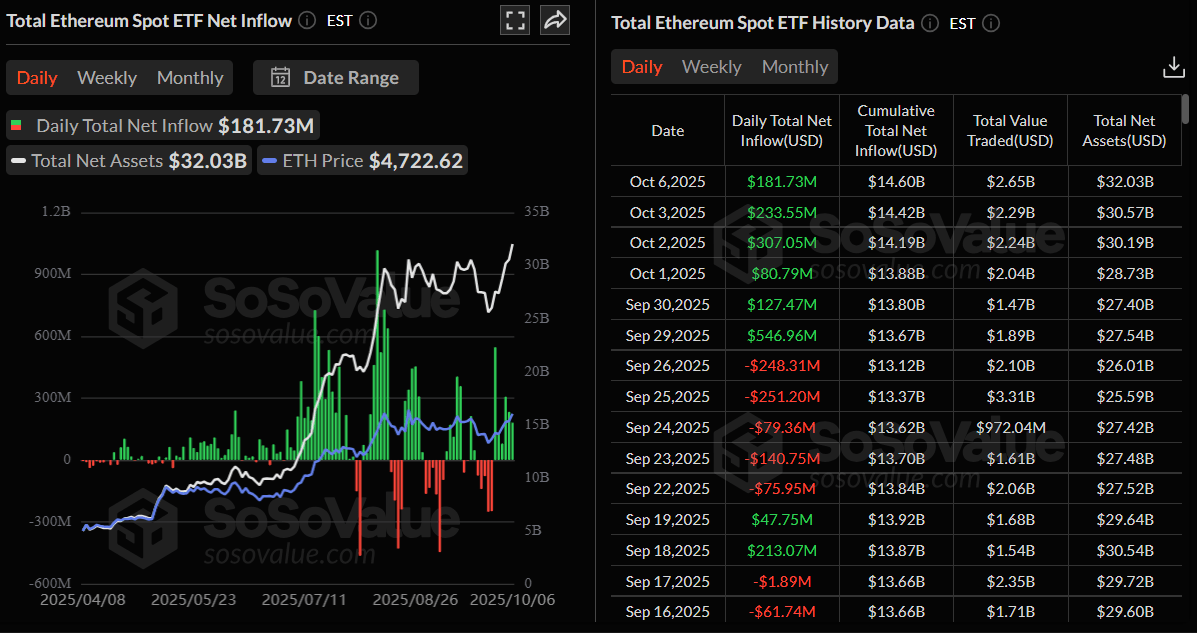 Demand for Ethereum spot ETFs has also increased steadily. As of Monday, the start of this week, an inflow of $181 million was recorded, marking six consecutive days of inflows.