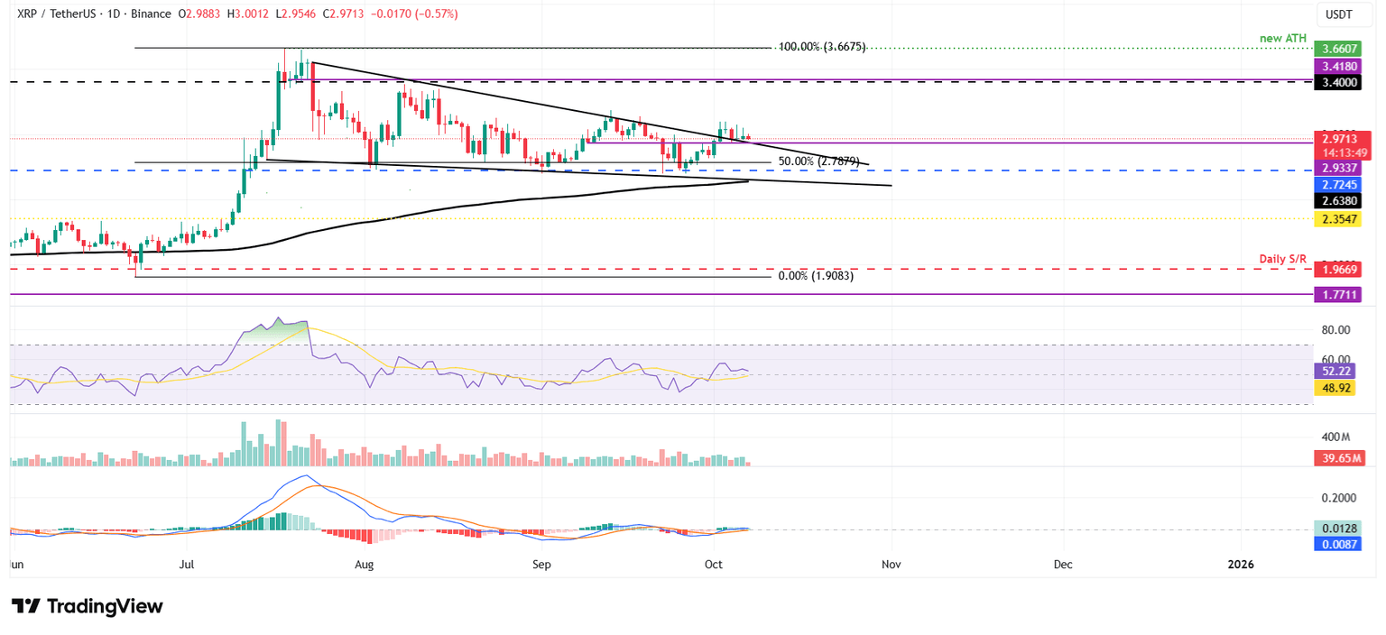 - XRP finds footing around a previously broken bullish pattern, with the next upside target at $3.40.