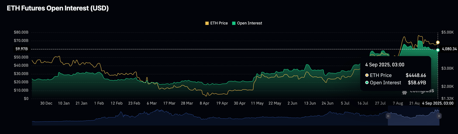 Ethereum, on the other hand, is facing a significant decline in futures Open Interest (OI), which, according to CoinGlass data, stands at $59 billion after peaking at a record high of $70 billion on August 24.