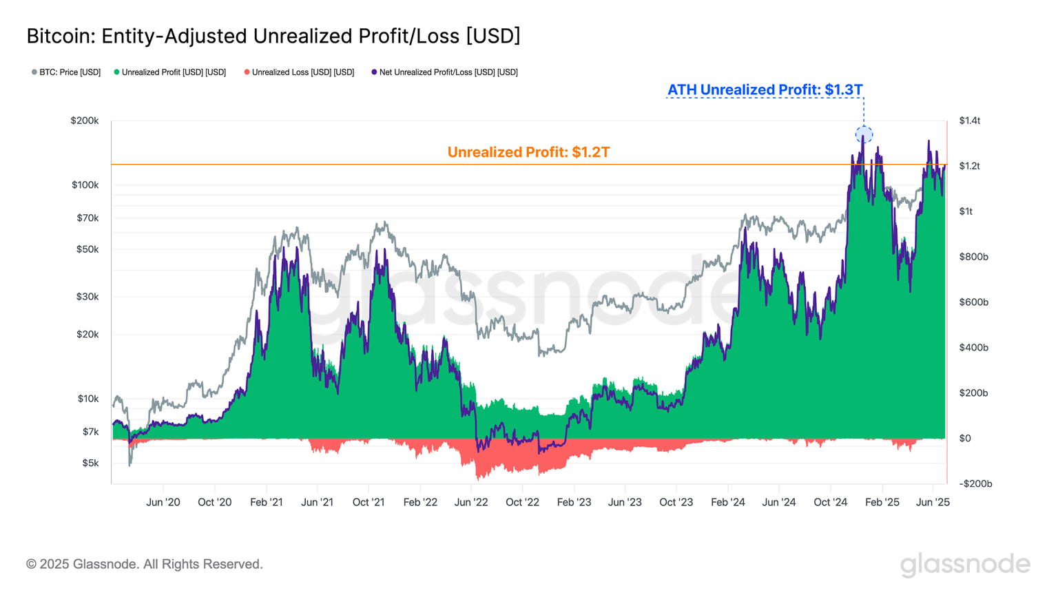 Glassnode highlighted in a recent report that the total unrealized profit currently stands at $1.2 trillion, indicating value creation among Bitcoin investors. However, this could pose a risk to the uptrend if sentiment shifts, triggering sell-side pressure.