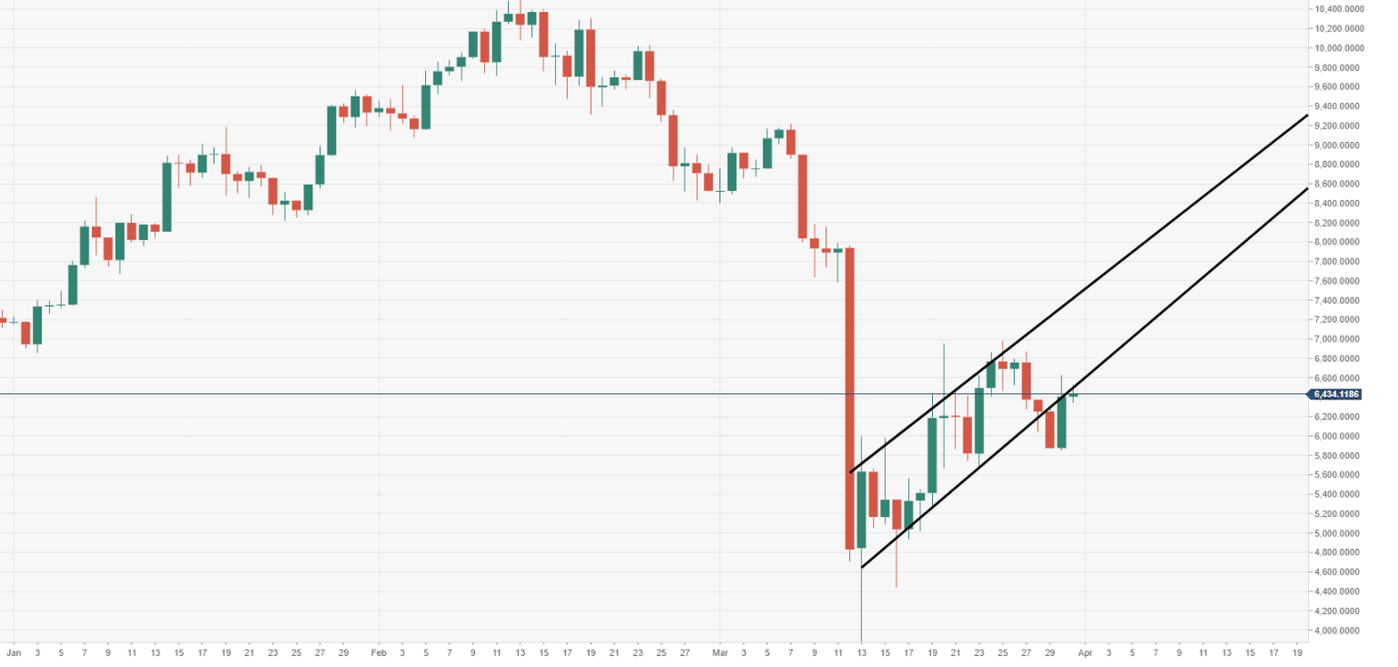 BTC/USD is currently trading at $6390 (+1.65%), the price remains vulnerable underneath $7000, a barrier also capping upside at $6500.