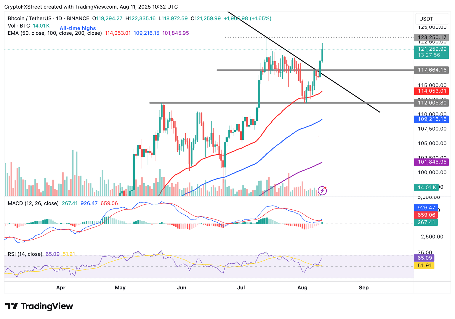 Bitcoin price is searching for higher support after rallying to an intraday high of $122,335. The bulls appear to be in control, backed by key technical indicators, including a buy signal from the Moving Average Convergence Divergence (MACD).